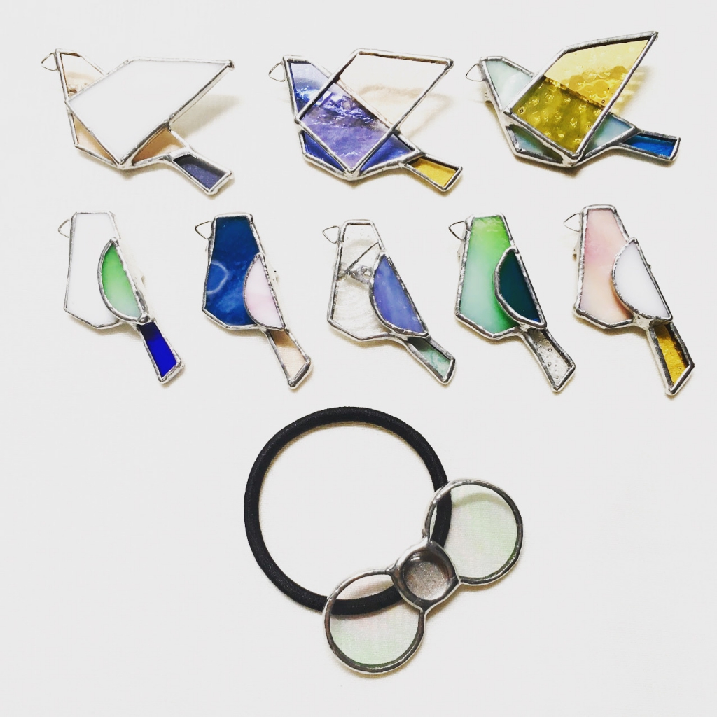 今回はパステルカラーの小鳥ブローチ、リボンやアイスクリームのヘアゴム 、星のチャームなどかわいらしいアイテムをご用意しました。